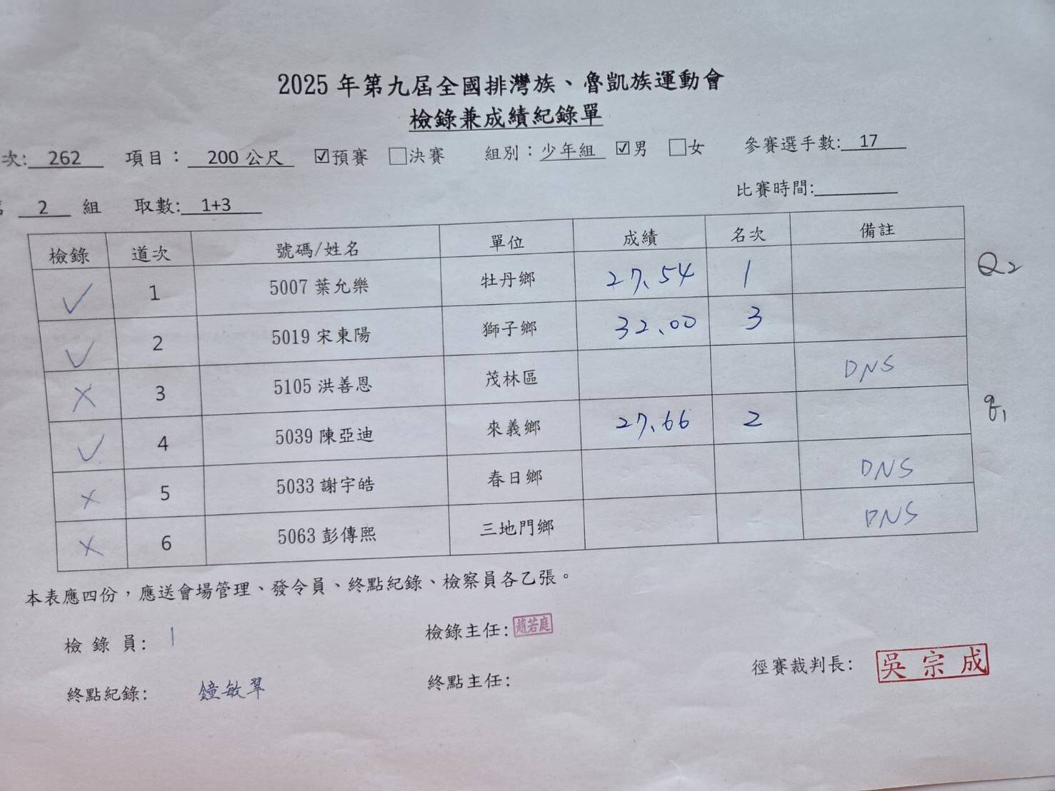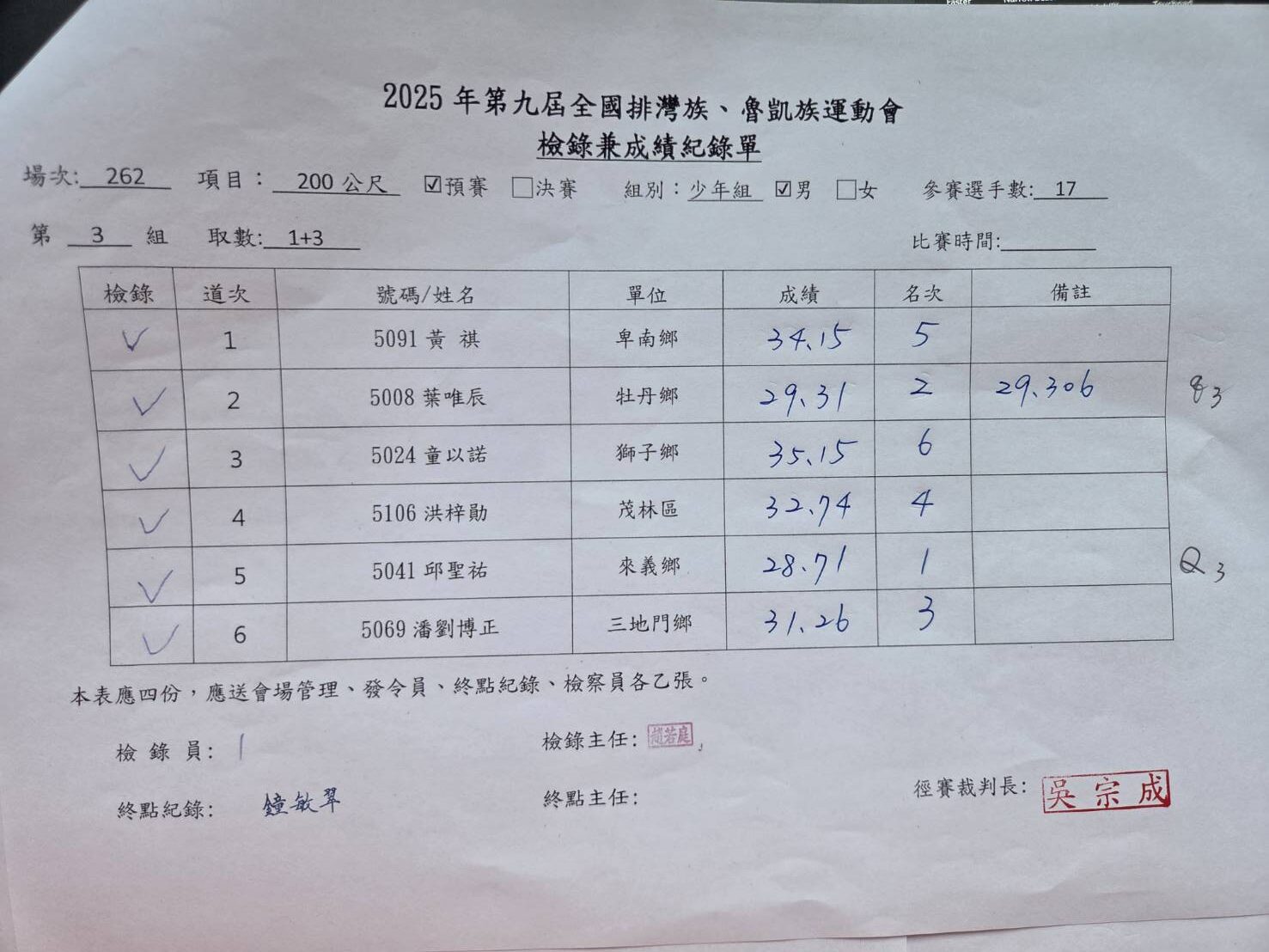 🎉🎉🎉狂賀!排球-壯年男子組(九人制)第一名:瑪家鄉(高文慶、何義勝、葉哲明、邱志文、蔡天明、蔣書懷、簡志強、方正榮、曾永安、林中逵、黃進雄、董志豪、黃彥俊、黃輝雄、郭明義)🎉🎉🎉狂賀!排球-公開男子組(六人制)第一名:瑪家鄉(董聖文、武睿恩、蔡東橙、林翰杰、謝宇杰、何皓維、李駿、施予恩、羅予宸、柳育晨、翁昱誠)🎉🎉🎉狂賀!籃球-公開男子組第一名:牡丹鄉(黃英凱、陳京華、潘念龍、宋富傑、尤承恩、張仲崴、林澔恩、周祐民、洪孝麒、許皓哲、潘昱璋、許昊評、洪懷恩、潘冠綸、黃少玄)🎉🎉🎉狂賀!籃球-壯年男子組第一名:牡丹鄉(白慶漢、林志偉、林克偉、謝志鴻、鄧凱君、潘宣任、林呈賢、陳韋麟、姚弘德、郭博駿、戚光復、陳政文、古啟為、董尚德、陳豪杰)🎉🎉🎉狂賀!排球-公開女子組(六人制)第一名:三地門鄉(高勒斯、柯念慈、古撒楂.思樂、吳瑜潔、王海燕、高恩慈、許瑜落、柯育婷、江思萳、何亮妤、宋湘薰、顏祈蓁)🎉🎉🎉狂賀!田徑-公開混合組【20x100 公尺大隊接力】第一名:牡丹鄉(潘以樂、歐奕廷、高立、杜俊毅、李樂、高晨耀、方致亮、郭大千、林佑杰、何以諾、董薇安、陳詩涵、余欣蕾、王緹、蔡方瑜、余涵、黃凌兒、蔡妤芯、杜禹瑩、鍾晨葳)🎉🎉🎉狂賀!足球(五人制)-少年女子組第一名:來義鄉(卓苡安、高姷安、劉馨妤、呂艾蓁、蘇利莎、高培欣、宗貝樺、王培瑄、林莫、高曉安、蘇艾莎、曹亞柏蘭)🎉🎉🎉狂賀!足球(五人制)-青少年女子組第一名:泰武鄉(田芷嫣、張歆瑜、陳琳、王羽涵、鍾愛、拉法屋斯.道卡都、孫妍晞、邱亮瑜、王喜善、謝巧恩、董暮婗、謝潔恩)🎉🎉🎉狂賀!足球(五人制)-青少年男子組第一名:牡丹鄉(陳杰瑞、潘政杰、陳聖楷、張維丞、謝雨翔、張辰軍、潘元澤、林 肯、高浩安、王胤、胡宇諾、白玉安)🎉🎉🎉狂賀!足球(五人制)-公開男子組第一名:春日鄉(黃杰、洪子貴、李祥偉、黃世恩、林陞、林晨、陳亞靖、林韋揚、陳家祥、蔡振偉、廖雨豪、潘宗皓)🎉🎉🎉狂賀!慢速壘球-公開男子組第一名:牡丹鄉(林承御、李冠年、馬許晧、尤士豪、潘華銨、張皓偉、張皓晨、林識賢、李智揚、陳泰羽、余廣嶺、童緯、古培脩、鐘聖傑、吳家銘、林奕廷、李紹宗、賴志成、黃岑浩、柯毅)🎉🎉🎉狂賀!傳統射箭-公開男女混雙對抗賽第一名:春日鄉(郭美心、呂天明)🎉🎉🎉狂賀!傳統拔河-公開混合組第一名:三地門鄉(鄭孝恆、郭文榮、雷建斌、鄭家豪、楊正豪、何浩銘、捌賽·達里馬烙·捌茲格勒、馮偉成、黃孝祖、蔡世豪、鄭孝榮、楊翔皓、黃孝宗、楊揚、田筱柔、涂陳眞、蔡芳妤、江以璇、董俐伶、全田以法、䝉偉杉、柯祖筠、杜以斯帖、馮玉安)🎉🎉🎉狂賀!羽球-壯年男子雙打第一名:瑪家鄉(洪仁光、簡孝勇)🎉🎉🎉狂賀!足球(五人制)-公開女子組第一名:牡丹鄉(黃鈺婷、黃玉慈、張君涵、鐘欣凌、張舒凱、謝嘉欣、柯璇、謝嘉禎、余亞凡、許師郁、黃宜君)🎉🎉🎉狂賀!田徑-公開男子組【4x400公尺接力】第一名:三地門鄉(明太尊、黃柏豪、邱孝嚴、詹堂貴)🎉🎉🎉狂賀!羽球-長青女子雙打第一名:來義鄉(高淑珍、余英玲)🎉🎉🎉狂賀!田徑-公開女子組【4x400公尺接力】第一名:牡丹鄉(余涵、劉萱、余欣蕾、董薇安)🎉🎉🎉狂賀!傳統射箭-公開男子組【團體對抗賽】第一名:金峰鄉(温少軒、蔡新德、陳璽旨、陳信有)🎉🎉🎉狂賀!傳統射箭-公開女子組【團體對抗賽】第一名:大武鄉(潘如慧、王妤若、潘如萍、谷阿娜 答給帆)🎉🎉🎉狂賀!田徑-公開男子組【三級跳遠】第一名:牡丹鄉(葉吳堉綋)🎉🎉🎉狂賀!足球(五人制)-少年男子組第一名:來義鄉(高丰、魏雋喆、柯柏文、卓尚恩、連霓昊、王維希、魏亮喆、羅允希、陳品叡、孔霆威)🎉🎉🎉狂賀!羽球-長青男子雙打第一名:牡丹鄉(蔡志光、蔡品清)🎉🎉🎉狂賀!桌球-公開團體組第一名:三地門鄉(李慶男、巴士明、陳明光、陳佳佑、陳彌、黃羽彤、黃韞纈、陳佳旋、邱秀妹、江恩羽)🎉🎉🎉狂賀!籃球-公開女子組第一名:牡丹鄉(周思華、劉赫媞、葉吳佳君、華韋恩、張卉卿、張卉庭、李恩屏、張佳茵、李安琪、陳子柔、張辰妍、潘芊芷、簡宇婕、莊婕心、葉吳佳佳)🎉🎉🎉狂賀!田徑-少年女子組【4x200公尺接力】第一名:來義鄉(洪敏恩、柯若婕、田甯、曹楊希)🎉🎉🎉狂賀!傳統射箭-公開女子組【個人對抗賽】第一名:大武鄉(谷阿娜.答給帆)🎉🎉🎉狂賀!羽球-壯年女子雙打第一名:霧臺鄉(鄭佳音、馮玉蘭)🎉🎉🎉狂賀!田徑-公開女子組【跳遠】第一名:達仁鄉(劉朔媛)🎉🎉🎉狂賀!田徑-少年男子組【4x200公尺接力】第一名:三地門鄉(鄭瑾謄、楊大慶、柯偉翔、馮敏傑)🎉🎉🎉狂賀!負重接力-公開混合組第一名:三地門鄉(翁俊洋、邱孝嚴、黃柏豪、明太尊、李柔、陳念家、邱孝諼、潘欣、潘念祖、江思萳)🎉🎉🎉狂賀!田徑-公開男子組【800公尺】第一名:瑪家鄉(簡廷翰)🎉🎉🎉狂賀!田徑-公開女子組【800公尺】第一名:來義鄉(湯婕妤)🎉🎉🎉狂賀!傳統射箭-公開男子組【個人對抗賽】第一名:卑南鄉(李漢儐)🎉🎉🎉狂賀!桌球-公開組女子雙打賽第一名:三地門鄉(黃韞纈、黃羽彤)🎉🎉🎉狂賀!桌球-公開組男子雙打賽第一名:三地門鄉(陳佳佑、陳彌)🎉🎉🎉狂賀!