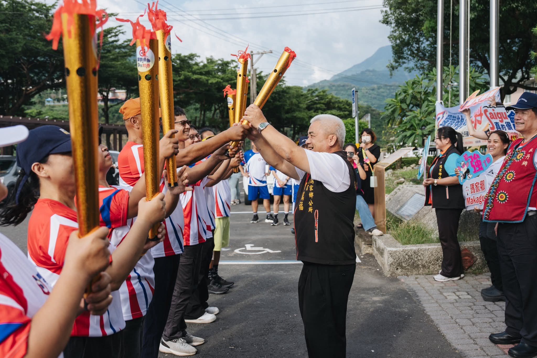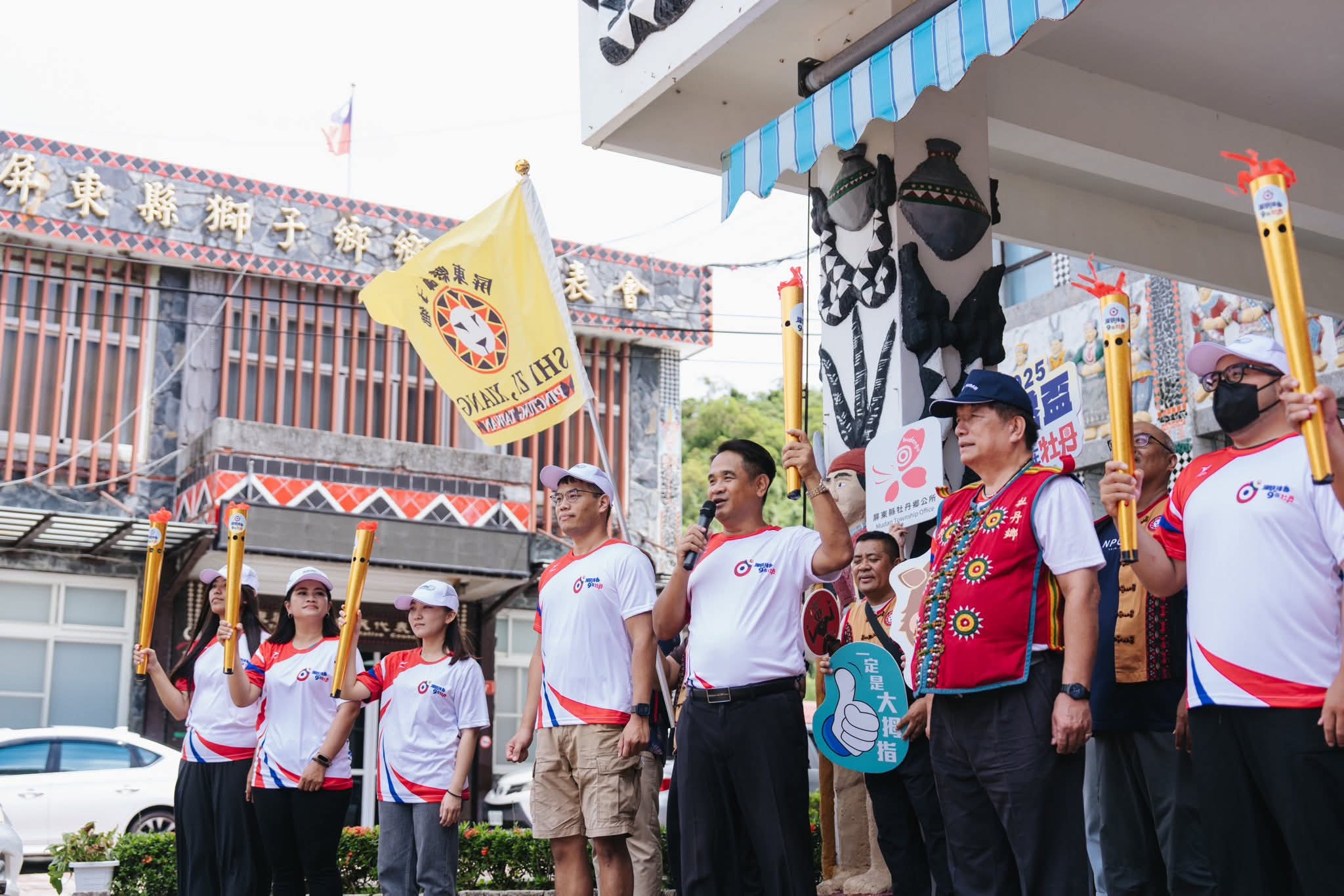 感謝 #泰武鄉長潘明福 親自帶隊迎接聖火,公所同仁直接用歌聲+舞步上場,大聲宣告:「下屆主辦就是泰武鄉啦!」