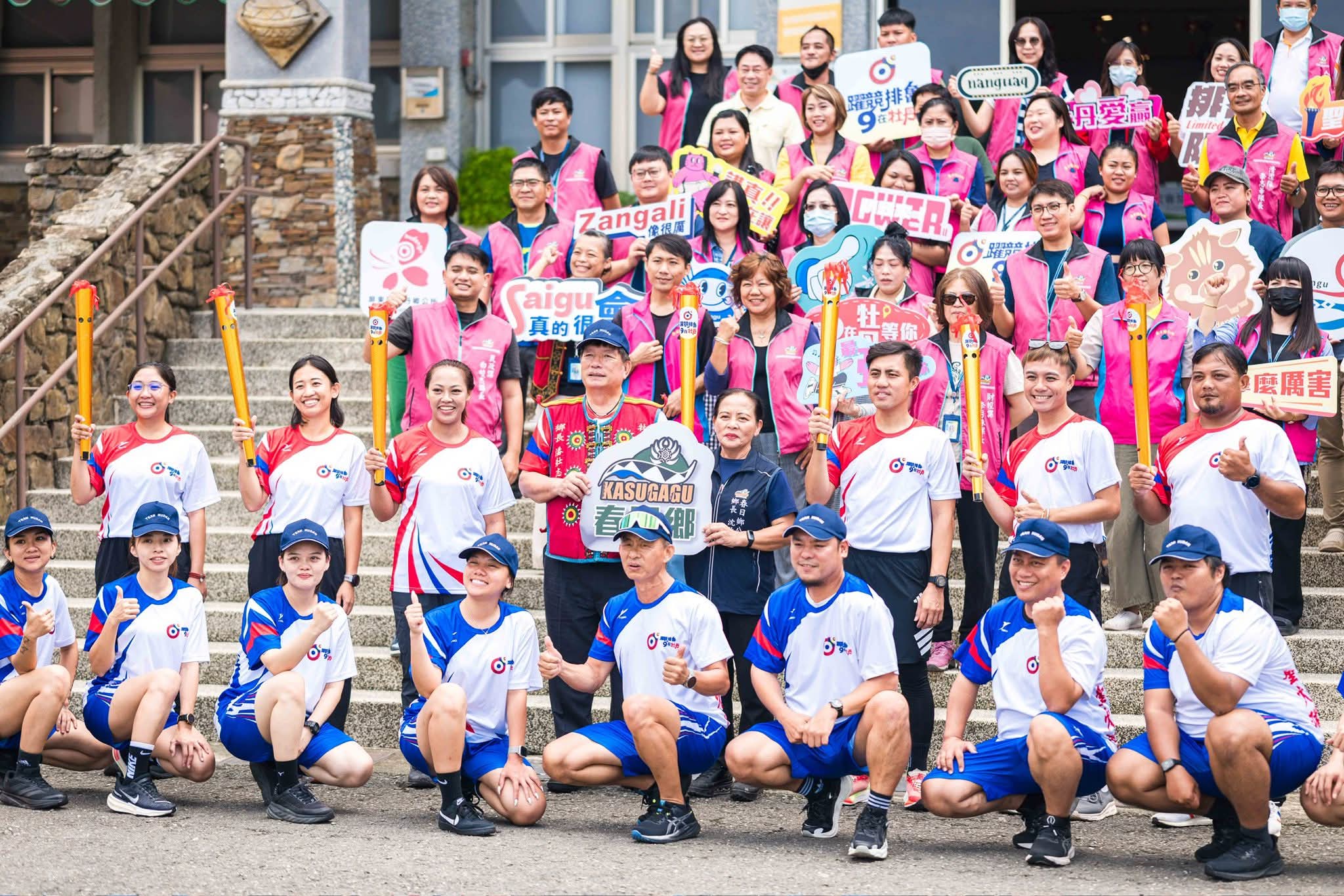 感謝 #春日鄉長沈秋花 親自接下聖火,同仁們一字排開,用笑容迎接,邊拍手邊喊「加油」👏